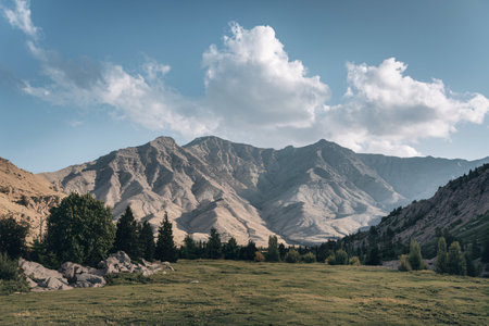 A joyful resident of Afghanistan 45 years old is smiling brightly, embodying the spirit of the region. His traditional attire complements the countryside background. Generative AI