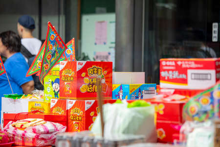 Yokohama, Japan - November 20, 2018 : Tourists are walking, shopping and eating in Chinatown at YOKOHAMA, JAPAN. Cinema tone concept.