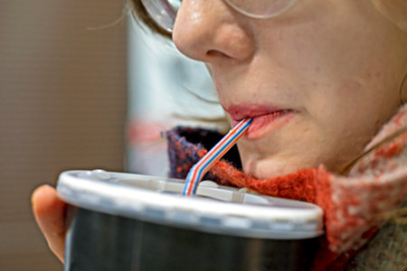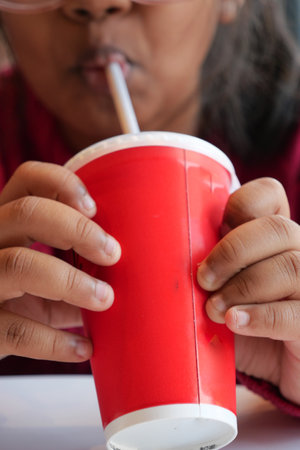 A Person Happily Enjoying a Refreshing Beverage from a Bright Red Cup