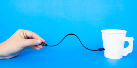 hand and cup connection by wire in social network
