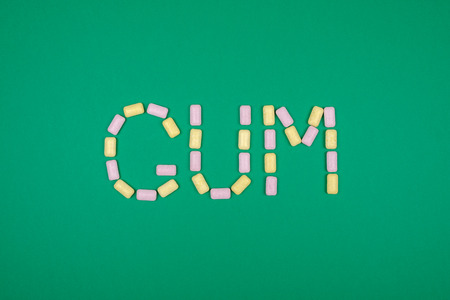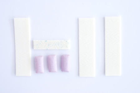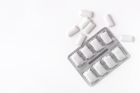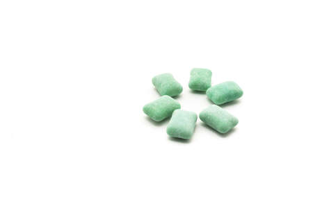 Chewing gums on white background. Sugar coated chewing gums for teeth health.