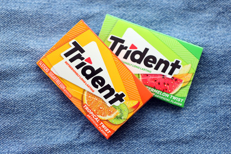 KYIV, UKRAINE - NOVEMBER 27, 2023 Trident chewing gum pack. Trident is famous US chewing gum brand since 1870