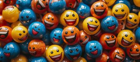 Vibrant close up of diverse emoticon balls colorful collection expressing various emotions