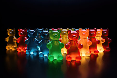 an array of gummy bears on a vibrant, textured surface, created with generative ai