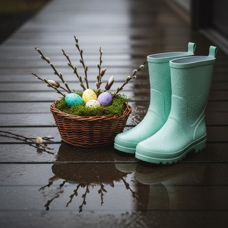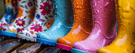 Colorful Rain Boots: A display of vibrant rain boots, illustrating the fashion and practicality of stylish rain gear during April showers.