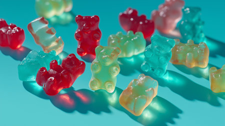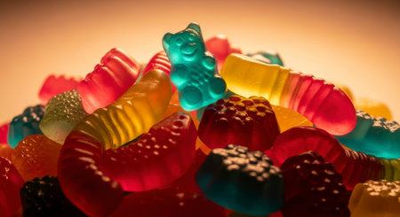 an array of gummy bears on a vibrant, textured surface, created with generative ai