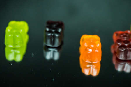 Mixed jelly bear, high angle view of taste sweet snack, colorful bears