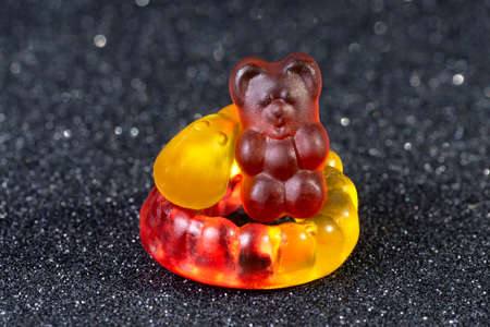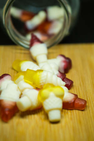The gummy bears lie nearby. Sweets in the form of animals. Unhealthy food