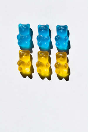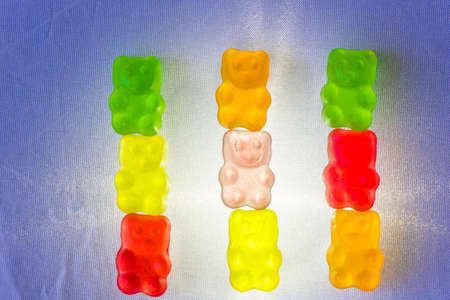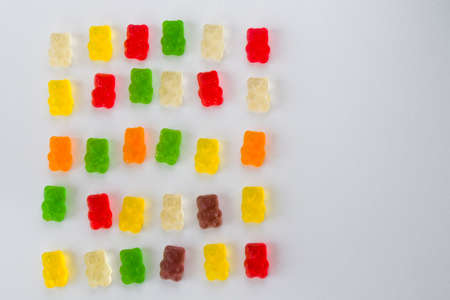 Mixed jelly bear, high angle view of taste sweet snack, colorful bears on the white background