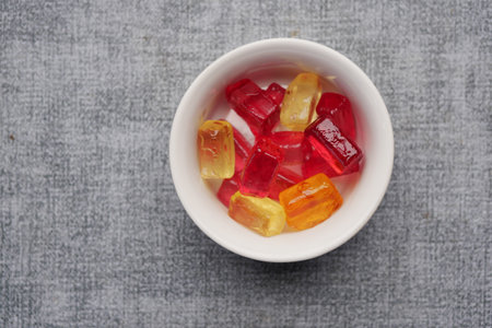 Mixed jelly marmalade, high angle view of taste sweet snack, colorful candy