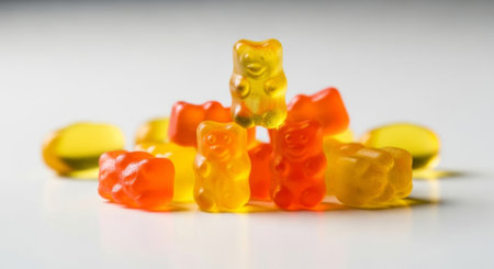 AI Generated. Gummy Bears Background for Wellness and Health Products in Natural and Organic Style