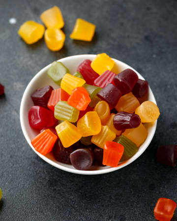 colorful fruit jelly candy on white backdrop