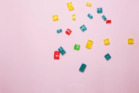 Multicolored plastic building blocks as background, closeup of photo