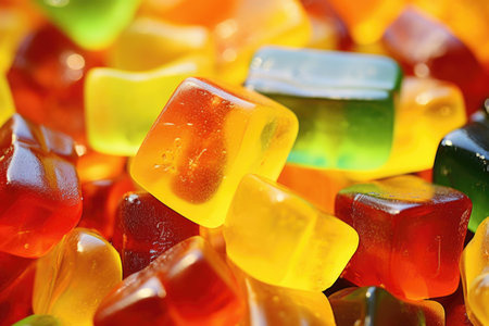 macro shot of translucent jelly cubes, created with generative ai