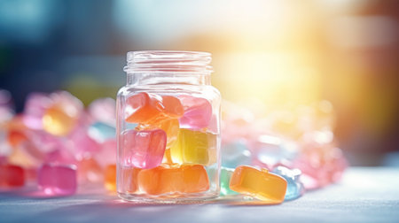 Close-up capture of chewable vitamins resembling fruity candies, a macro view of healthy joy in assorted colors