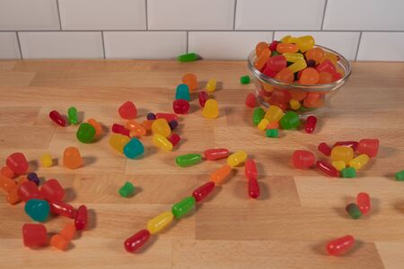 pile of colorful gummy candies, showcasing their vibrant hues and chewy textures.