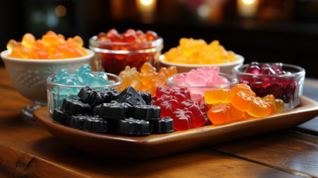A delicious array of colorful gummy bears adorns the table, a perfect sweet treat to bring joy and delight indoors