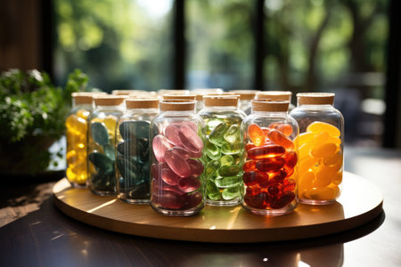 different types of vitamins stored in separate compartments in factory, created with generative ai