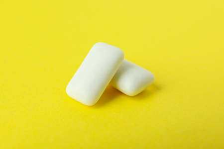 Chewing or bubble gum on yellow background