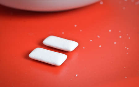 Chewing gums on red background