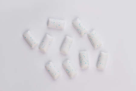 Chewing gums on white background. Sugar coated chewing gums for teeth health.