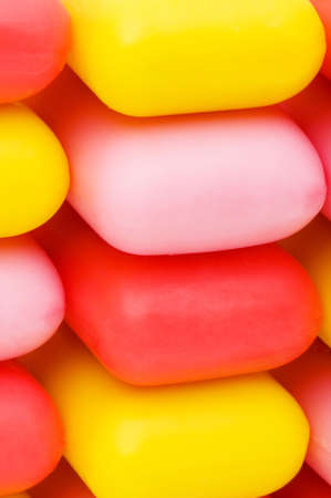 Multi-colored chewing gum on a yellow background.