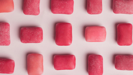 Close up view of white chewing gums on pink background