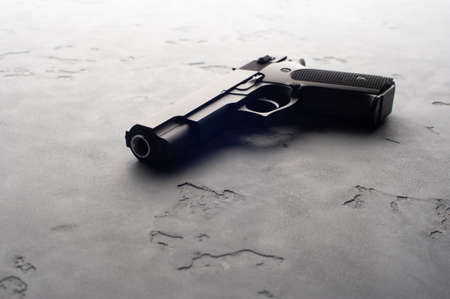 Gun on black table, criminal concept
