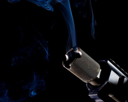 Handgun that has just delivered a shot with smoke around