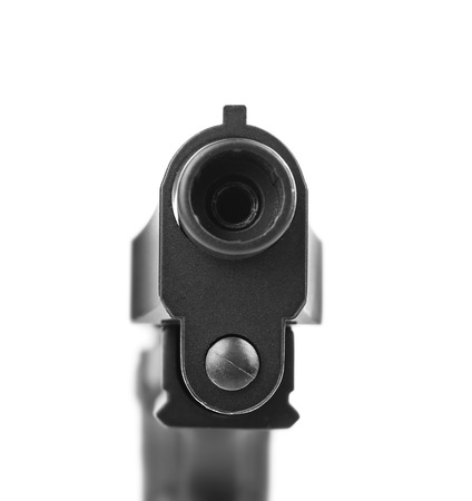 aimed barrel of a pistol, isolated on white background