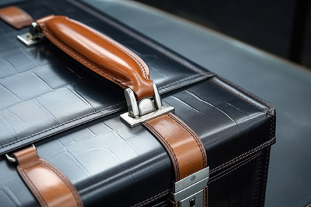 A close-up of a black hardshell briefcase, its sturdy metal lock gleaming under dramatic light. The contents are confidential and valuable, secured for a high-stakes transaction or a secret mission.