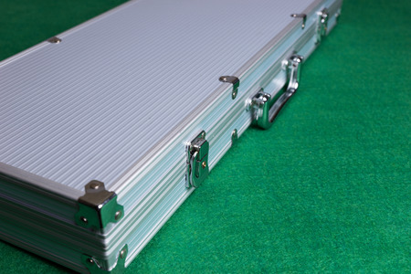 Metal box. Iron case. The aluminum iron suitcase with locks.