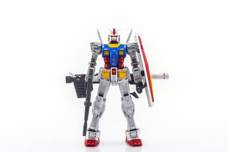 Gundam robot modeled approximately 1 meter length . On a white background