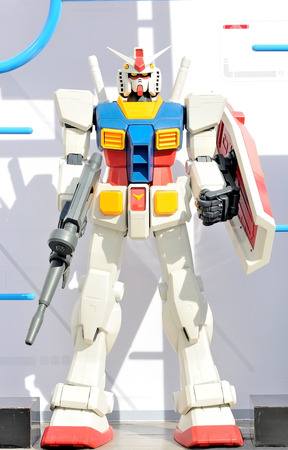 ODAIBA - TOKYO, JAPAN - November 9, 2015 : Statue of Gundam at DivercCity Tokyo Plaza in Tokyo. It is a full-size in ratio 1:1 of Gundam Statue Performances a the biggest Gundam in the world.