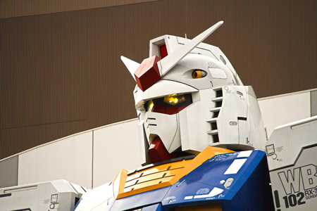 Full size Gundam Performances Outside DiverCity Tokyo Plaza, Odaiba, Tokyo, Japan - 27 November 2015: It is 18m tall The sculpture of famous anime franchise robot, Gundam.