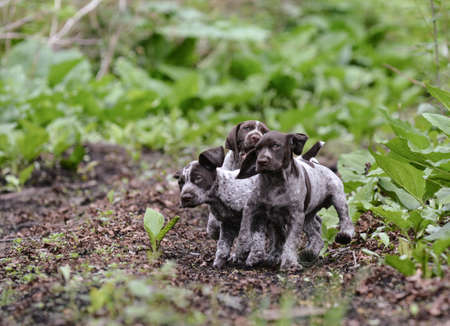 German shorthaired pointer puppy portrait in the nature. Shallow depth of field.