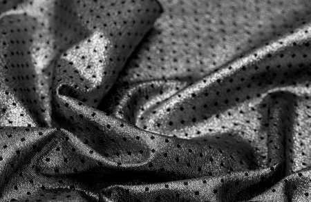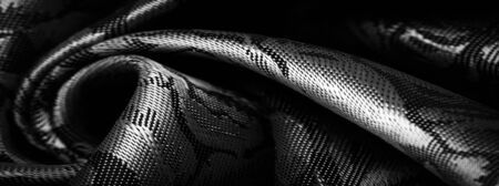 Background texture, Black and white silk fabric, silver. titanium. floral pattern, corrugation, reef, undulation, undulation, ripples, a small wave or a series of waves on the surface of the fabric,