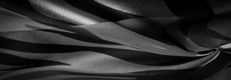 Background texture of silk fabric. This is a natural black scarf, this beautiful nylon satin made of rayon with a transparent hand and a wonderful sheen is perfect for your projects..