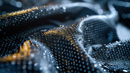 Synthetic polyester fabric with holes. Abstract background. A wave-folded piece of fabric in gray or silver color. Neatly hemmed fabric