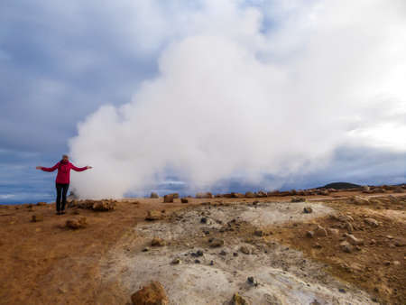 Clouds of water vapor smelling sulfur sprouts in the Hverir volcanic area, Iceland