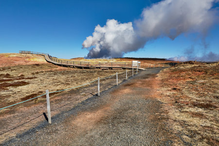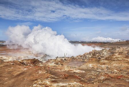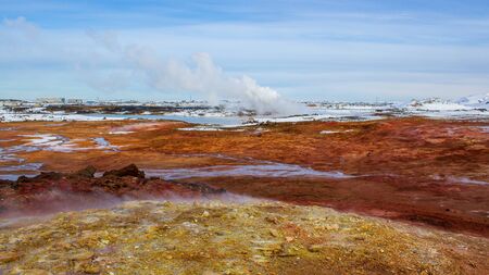 Gunnuhver Hot Springs at Grindavik, Iceland. The mud pools and steam vents on the southwest part of Reykjanes, Iceland.