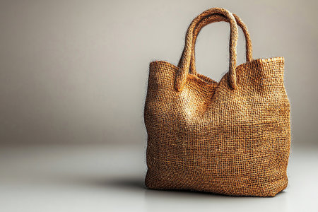 Burlap packaging sits on a clean sky-blue background, showing eco-friendly design and materials, perfect for sustainable products.