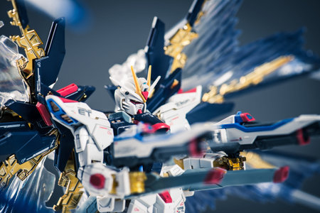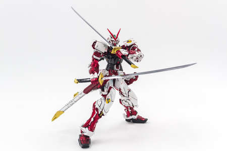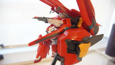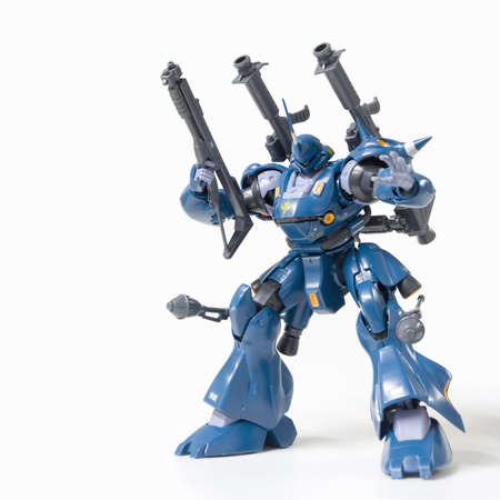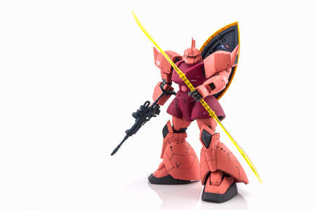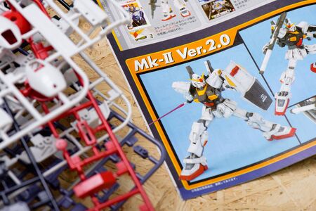 BANGKOK, THAILAND - AUGUST 11, 2015: Photo of master grade RX-178 Gundam Mk-II Model in manual. Gundam models are model kits depicting characters of the fictional Gundam universe by Bandai.