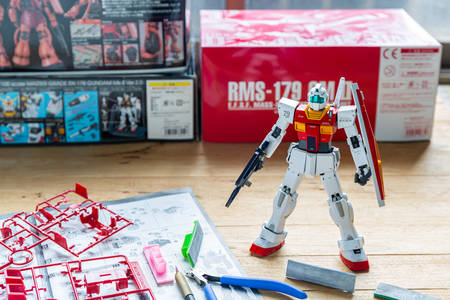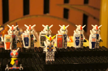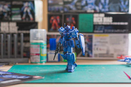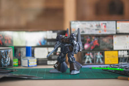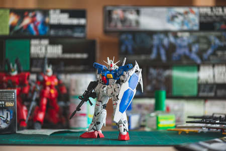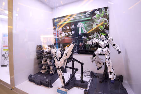 Bangkok, Thailand - September 15, 2019: Gundam scale plastic models. Hobby toy from Sunrise's anime series Mobile Suit Gundam.