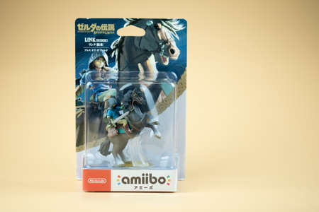 Bangkok, Thailand - February 6, 2020. Figure amiibo game of link Zelda in packaging for Nintendo Switch. Game The Legend of Zelda