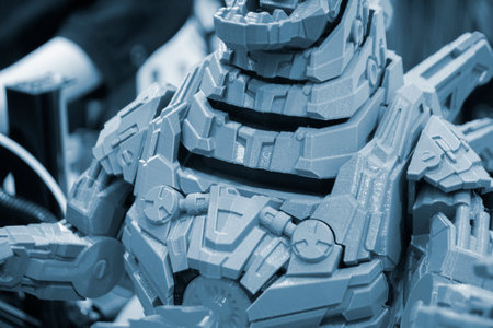 Detail element robot toy created on 3D printer. Art object printed on 3D printer. Modern new innovative technology. High-precision 3D printing technologies. Creation of three-dimensional models.
