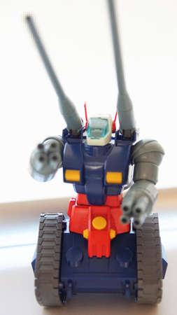 BANGKOK, THAILAND - Mar 7 ,2021 RX-75 Gun Tank Plastic models from animation gundam series scale 1:144