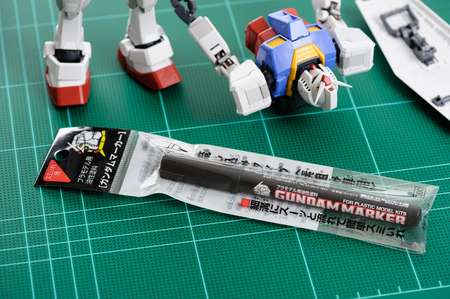 BANGKOK, THAILAND - AUGUST 06, 2015: The Gundam Marker (marker for plastic model kits) on cutting mat.
