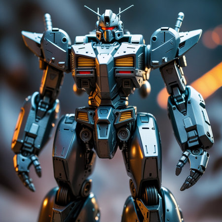 Innovative design shrinks to palm-size with this intricate miniature mech robot toy, 3d,robotic,dreamy gold,bokeh