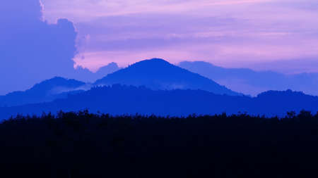 Panorama of beauty blue foggy mountains range. Landscape photography